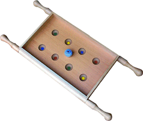 Un jeu d’équilibre en coopération où les deux joueurs cherchent à mettre les boules de couleurs dans les trous correspondants